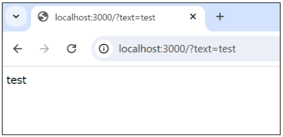}); 記述の内容を説明する前に、ブラウザで実際に確認してみましょう。サーバーを再起動して、URL「http://localhost:3000/?text=test」にアクセスします。