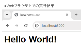 それでは、server.jsファイルに以下の記述例を追記し、「http://localhost:3000」にアクセスしましょう。