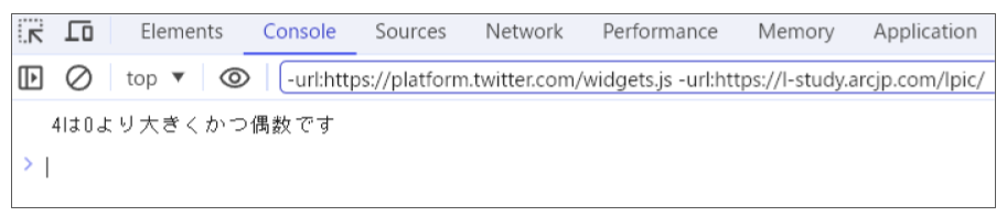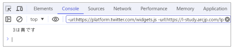 console.log("真(true)と判定しました");