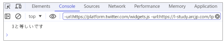 上記では、初期化式で「let number = 1」が定義され、条件式「number <= 3」が真の間、ループ処理が繰り返されます。ループ処理中はブロック内のconsole.log()によって、変数numberの値が表示されます。