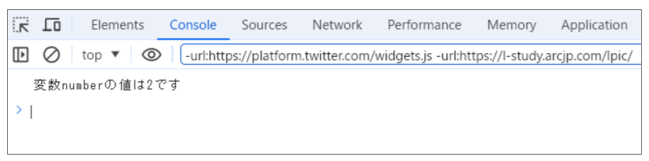 console.log(number); // 変数numberの値を表示する